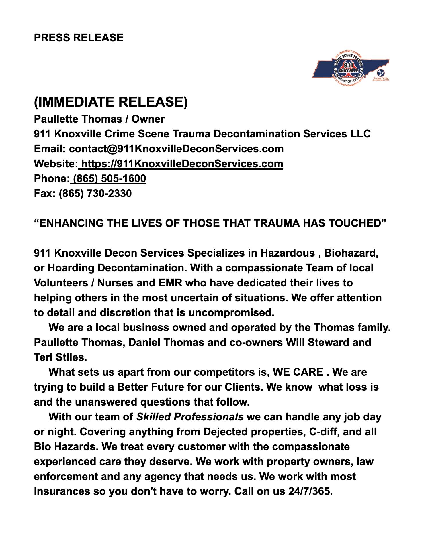 Bodily Fluid Removal in Louisville, Tellico Village, TN, Knox County and Surrounding Areas