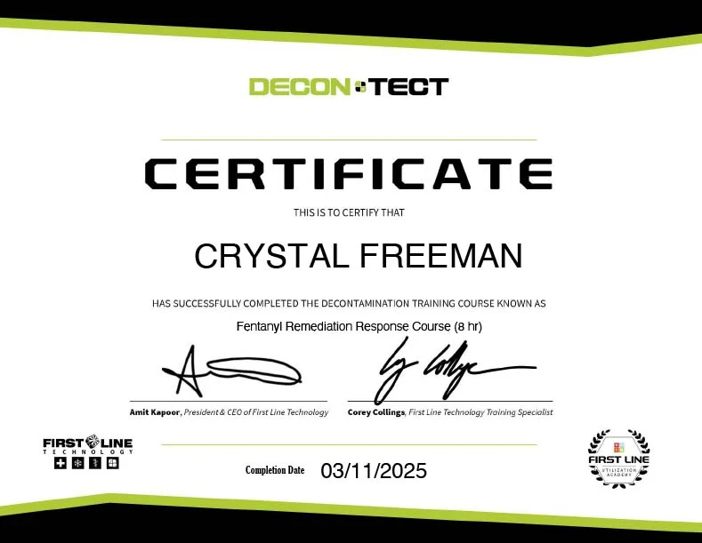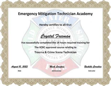 A person trained in the proper procedures and protocols for cleaning, disinfecting, remediation, storage and removal of biohazardous waste, wherever it may be found.