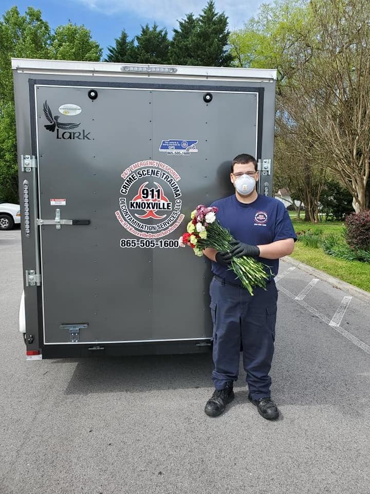 Our owner and Asst. Director of Operations Daniel S. Thomas, along with one of our new members, Jacob Goderich- Crime Scene Technician and Volunteer firefighter with Sevier County fire department gave out over 600 roses and carnations today as part of a Campaign 911 Knox Decon Srvs Sponsored